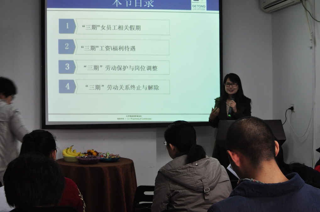 2014年10月31日下午,北京格通律师事务所成功举办了《孕期、产期、哺乳期女员工劳动关系管理》专题培训,近四十位企业人事参加了本次培训。